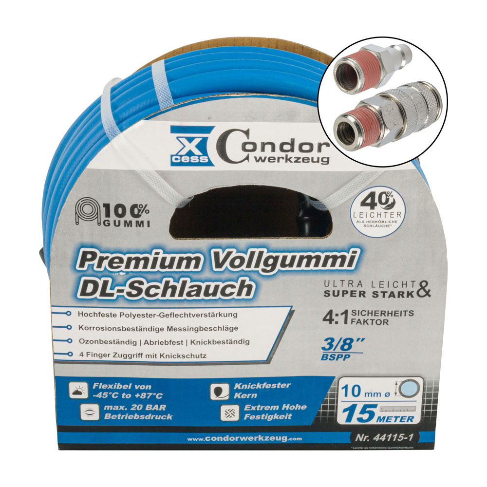 Condor DL-Schlauch ø10mm x 15m, High-End-Voll-Gummi, Schnell-Kupplung
