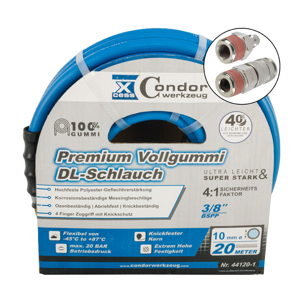 Condor DL-Schlauch ø10mm x 20m, High-End-Voll-Gummi, Schnell-Kupplung