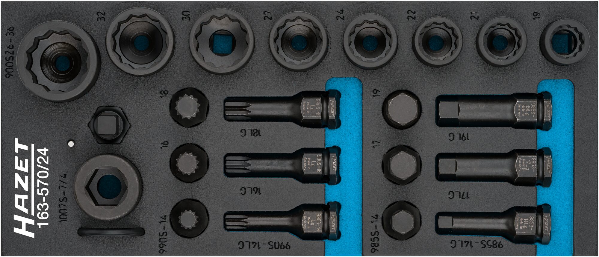 HAZET Schlag-, Maschinenschrauber Steckschlüsseleinsatz Satz 163-570/24 ∙ 1/2 Zoll (12,5 mm) Vierkant