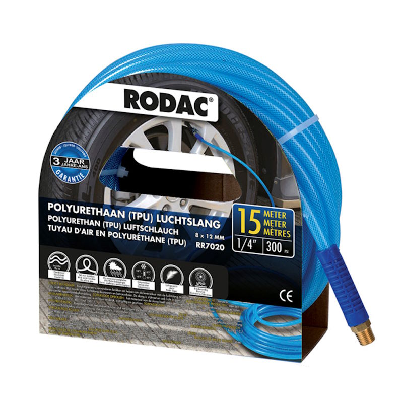 Dieser 15 Meter lange Polyurethan-Druckluftschlauch ist verschleißfest und flexibel.