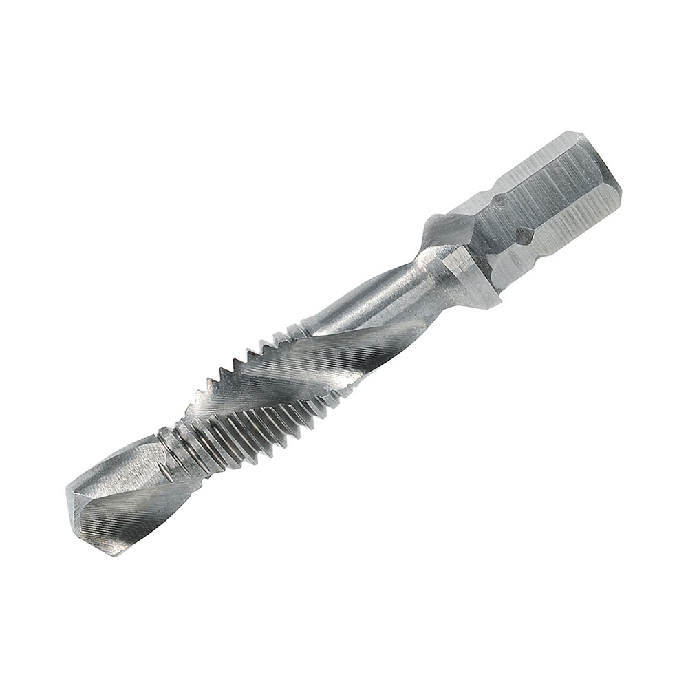 VÖLKEL-Kombi-Bits sind für das Gewindeschneiden mit Akku-Bohrmaschinen und Handbohrmaschinen mit Rechts- und Linkslauf konzipiert. Sie eignen sich aber auch für das Gewindeschneiden auf stationären Bohrmaschinen. Ihr Einsatzgebiet liegt in der Bearbeitung von Stahl, NE-Metallen und Kunststoffen (bis 600 N/mm² Zugfestigkeit). Es können nur Durch-gangsgewinde bis zu einer maximalen Gewindetiefe von 1 x D gefertigt werden. Besonders nützlich sind sie für Montagearbeiten und Kleinserien. Achten Sie darauf, dass Werkzeugachse und Lochachse genau fluchten und verwenden Sie ein geeignetes Schneidöl.