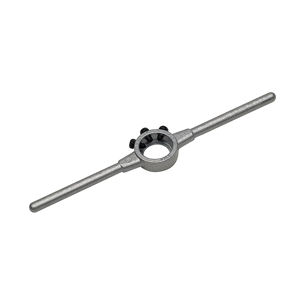 Zur Aufnahme von runden Schneideisen. Die Arretierung der Schneideisen erfolgt durch Klemmschrauben am Zentralkorpus.